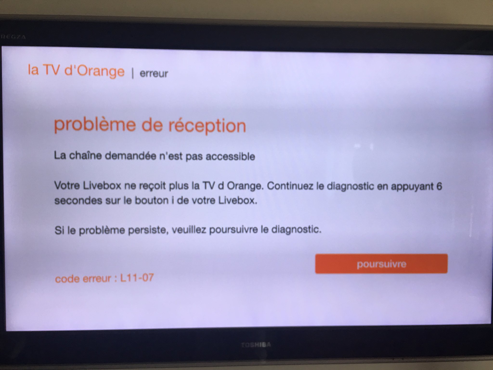 Code erreur L11-06 Les FAQ. Je constate depuis quelques semaines des erreurs fréquentes sur mon décodeur TV. 30 août 2018 à 135921 Le problème est pris en compte chez Orange seuls certains décodeurs sont. TV Orange erreur L11-06 L11-08 L11-09 Réponse 2 le.